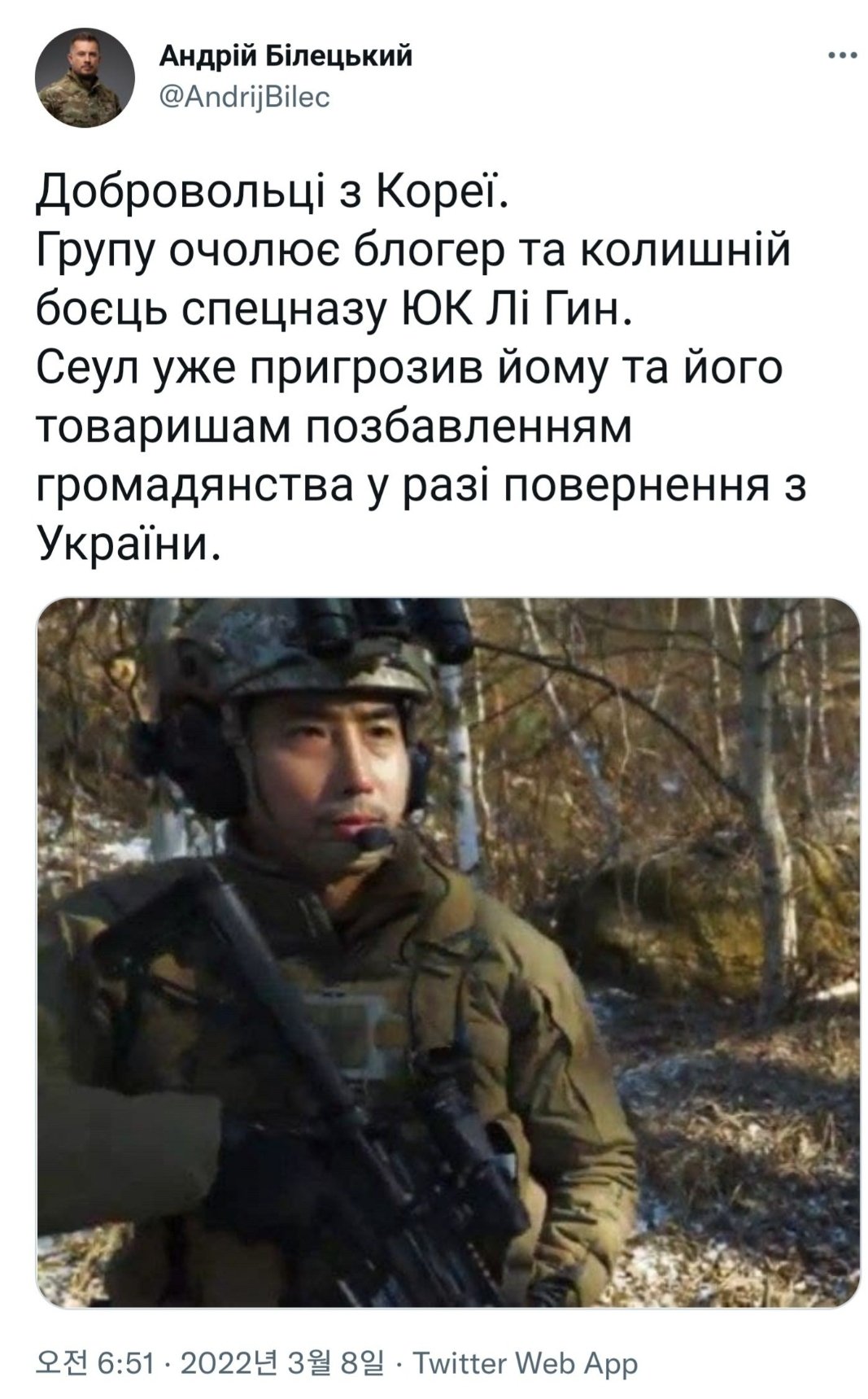 공식적으로 우크라이나 의용군(국제여단)에 참여한 UDT 대위 출신 유튜버 이근이 시민권을 받을 지에 초점이 쏠렸다. 우크라이나 당국은 러시아 침공에 맞서 참전한 외국인들에게 시민권
